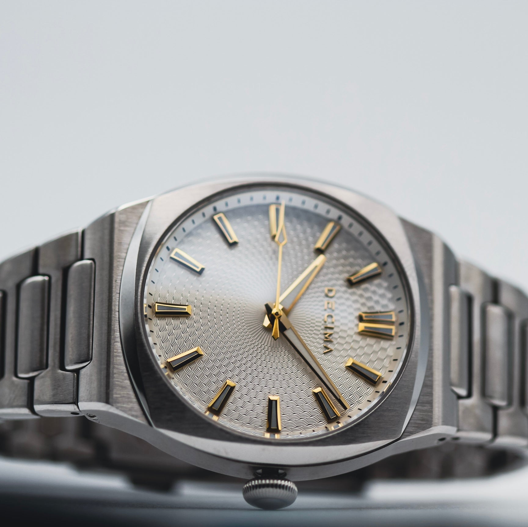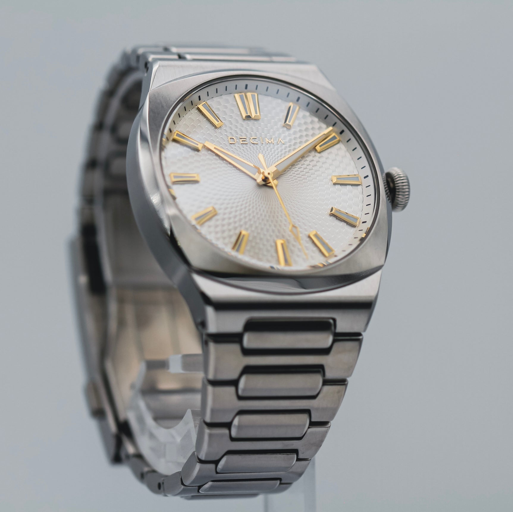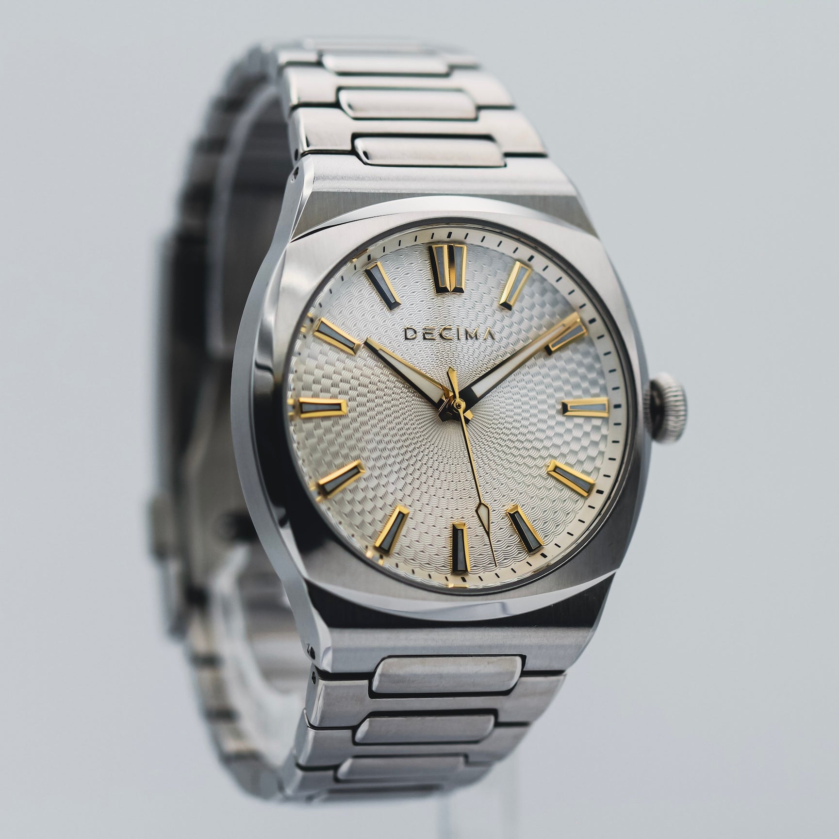 The Decima Gatekeeper Collection unites two worlds of horology in perfect harmony. The dial exudes timeless sophistication, featuring elegant dauphine hands, faceted applied indices, and a refined guilloché panier motif. In contrast, the bold case design commands attention with its distinctive silhouette and a flawless interplay of brushed and mirror-polished finishes.