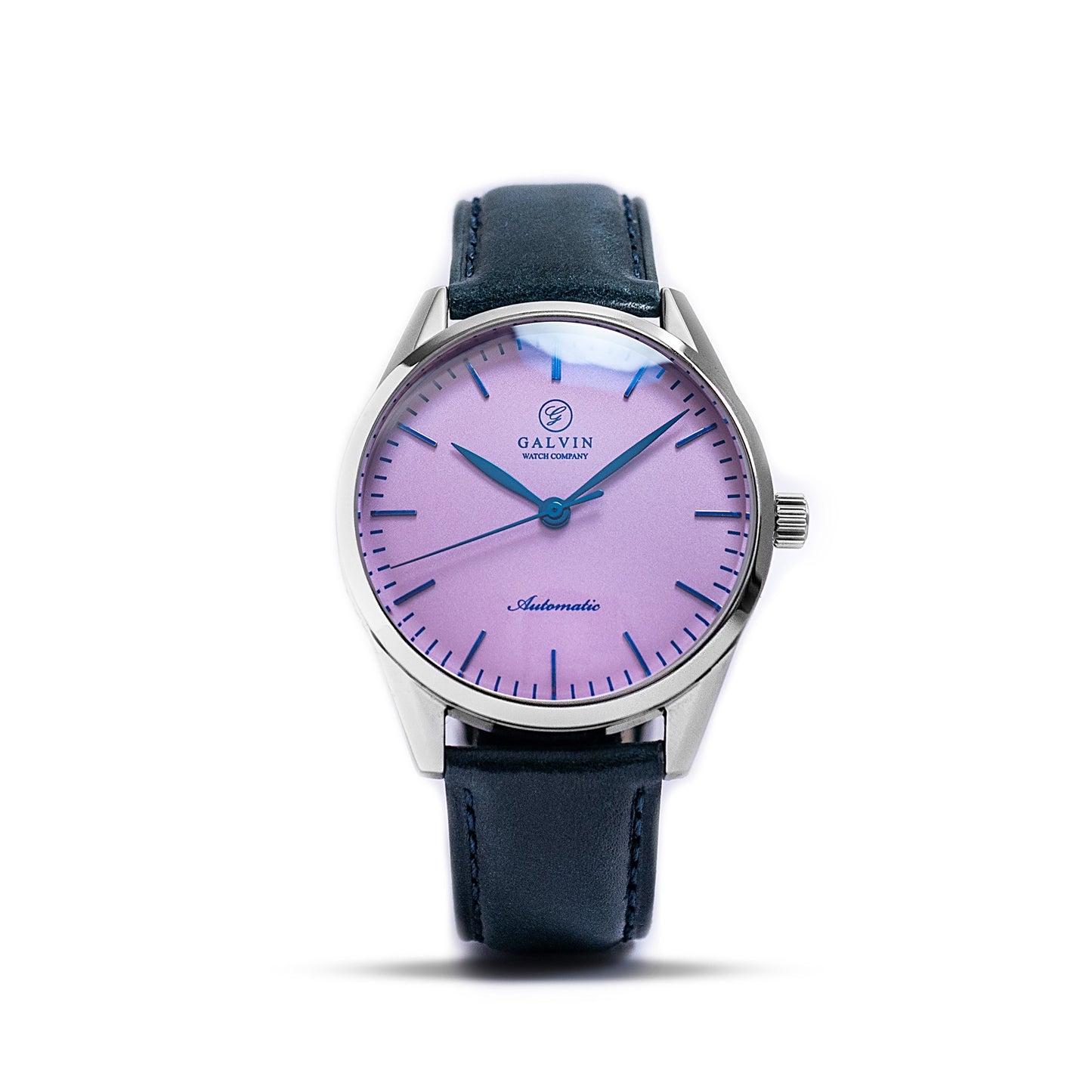 Inspired by the golden age of watchmaking, the Alku Collection features a domed sapphire crystal and classic indexes. The transparent case back reveals the Miyota 9039 Calibre, showcasing its beauty. The distinctive Nordic design reflects the vision of Susan Galvin, the founder of Galvin Watch Company.