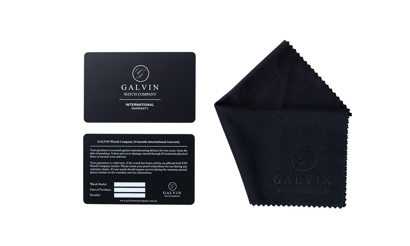 All Galvin Watch Company watches purchased come with a 24 month manufacturer’s warranty, valid from your date of purchase. More details here.