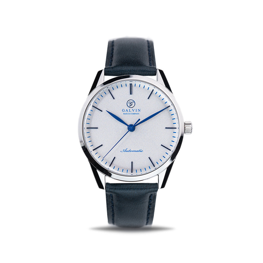 Inspired by the golden age of watchmaking, the Alku Collection features a domed sapphire crystal and classic indexes. The transparent case back reveals the Miyota 9039 Calibre, showcasing its beauty. The distinctive Nordic design reflects the vision of Susan Galvin, the founder of Galvin Watch Company.