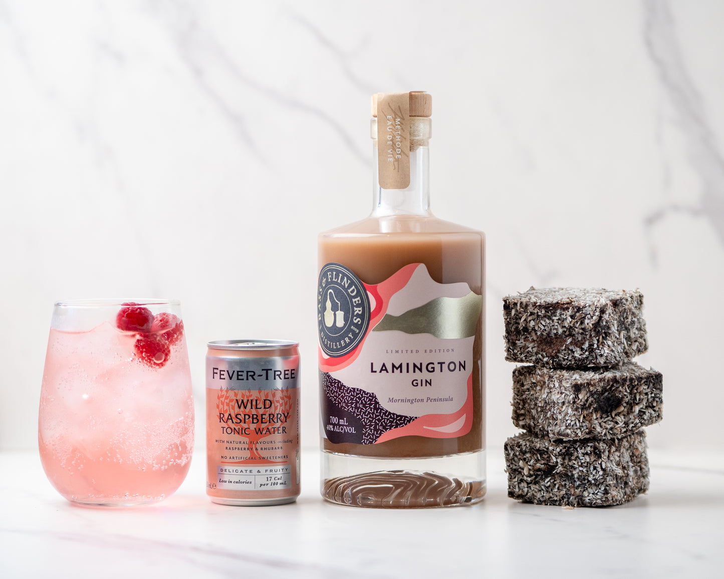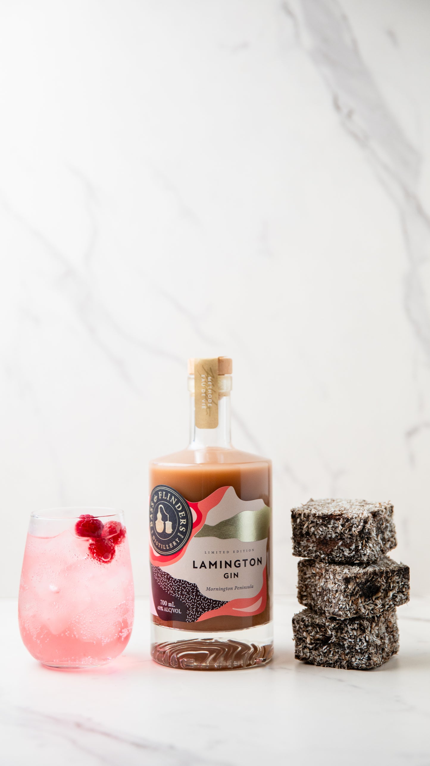 Lamington Gin is crafted with cacao husks, toasted coconut, luscious vanilla, and fresh raspberries.