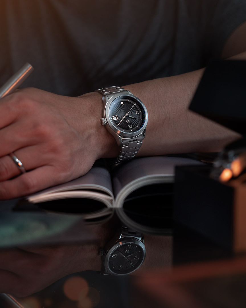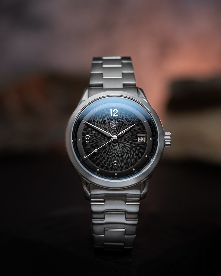 Loimu*, the second collection from Galvin Watch Company, showcases an automatic movement with a date window. Crafted by industry accredited watchmaker Susan Galvin, this collection celebrates her northern Finnish roots. The guilloché-style dials beautifully reflect the radiant aurora borealis of the northern night sky.