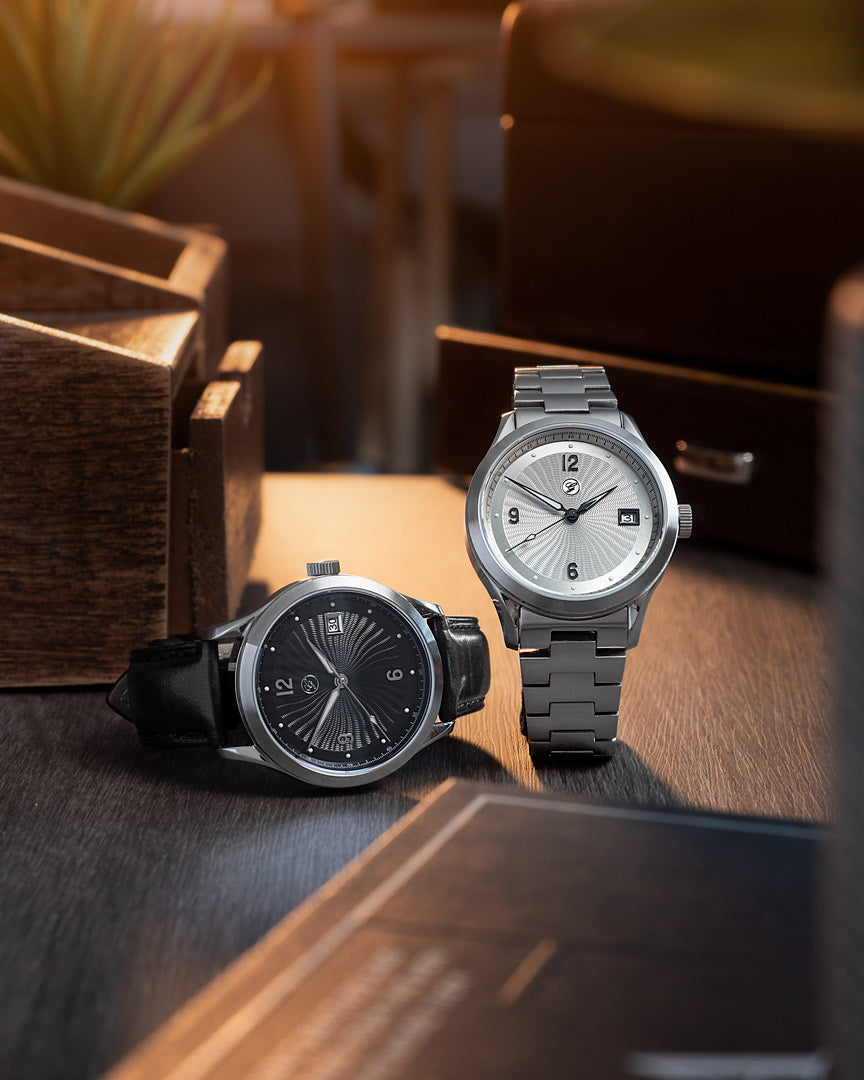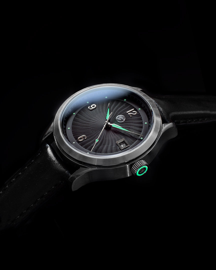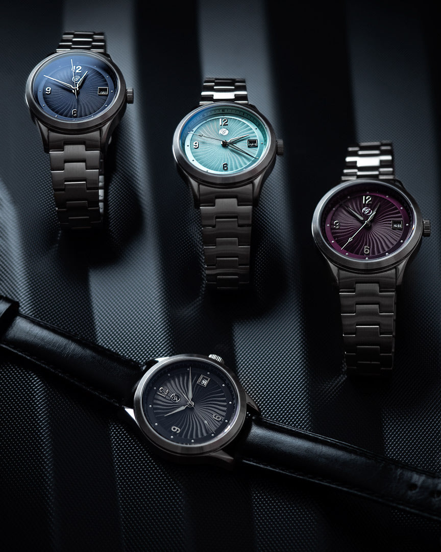 Loimu*, the second collection from Galvin Watch Company, showcases an automatic movement with a date window. Crafted by industry accredited watchmaker Susan Galvin, this collection celebrates her northern Finnish roots. The guilloché-style dials beautifully reflect the radiant aurora borealis of the northern night sky.