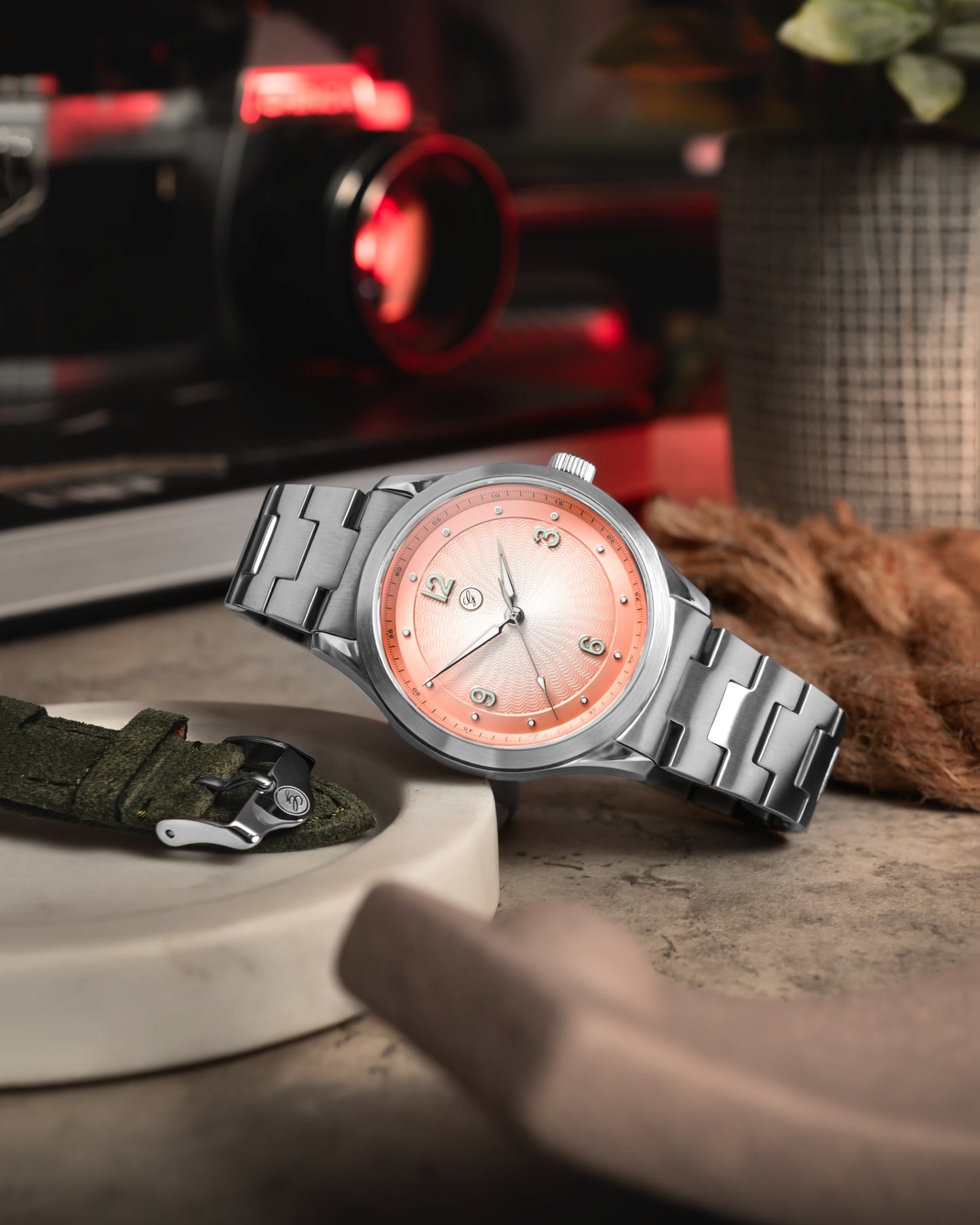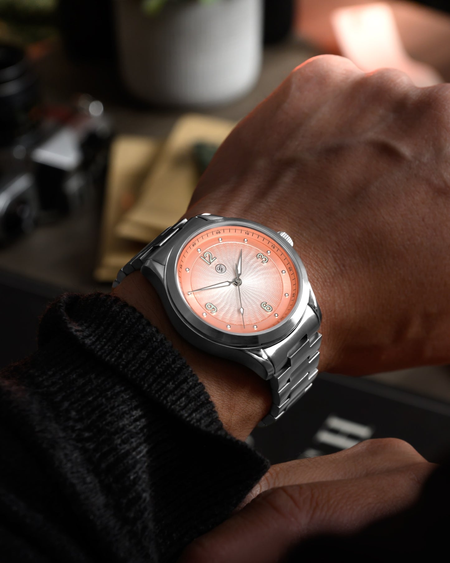 This special edition showcases a beautiful guilloche-style dial in a gradient Frozen Salmon hue, shifting from lighter tones at the center to deeper shades around the edges, creating a striking sense of depth.