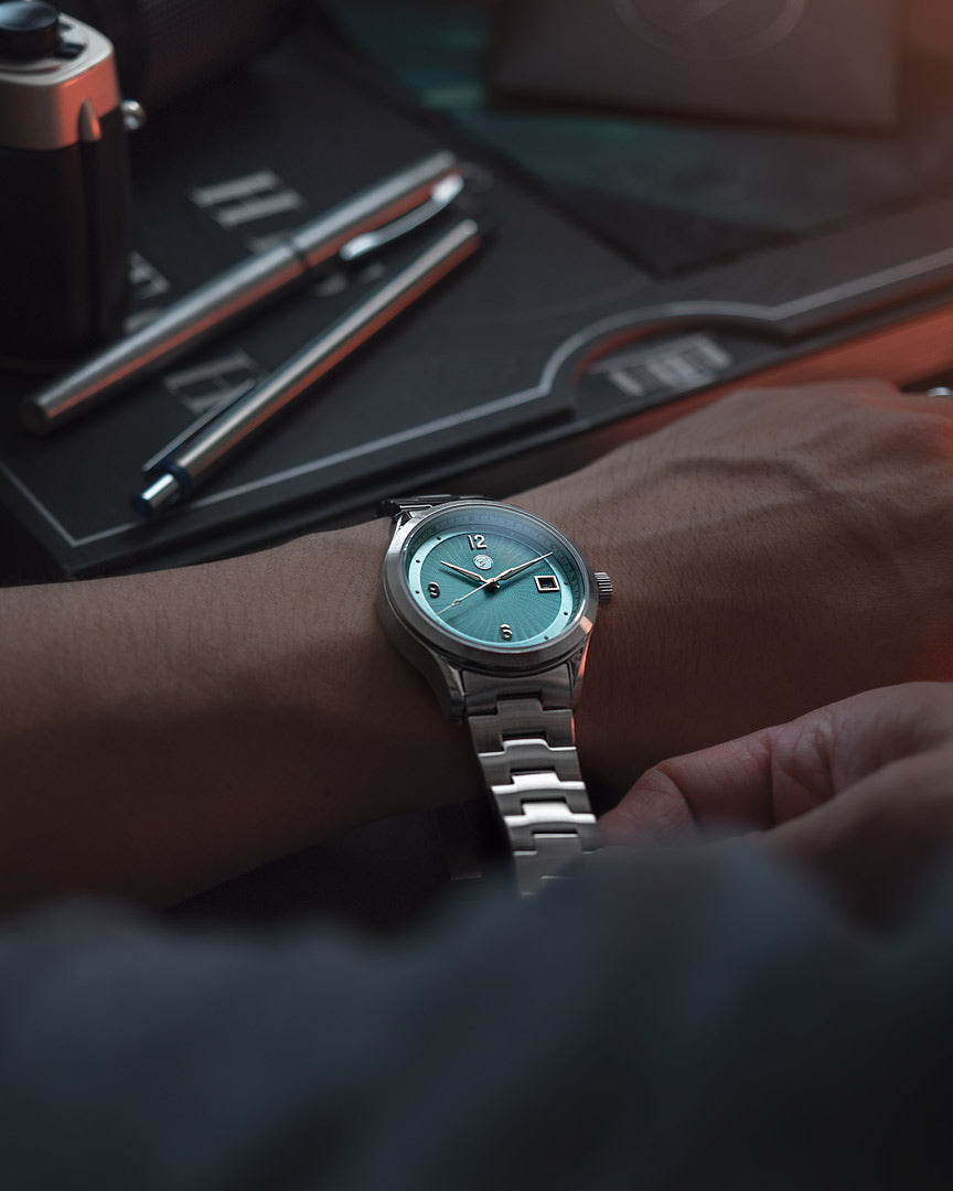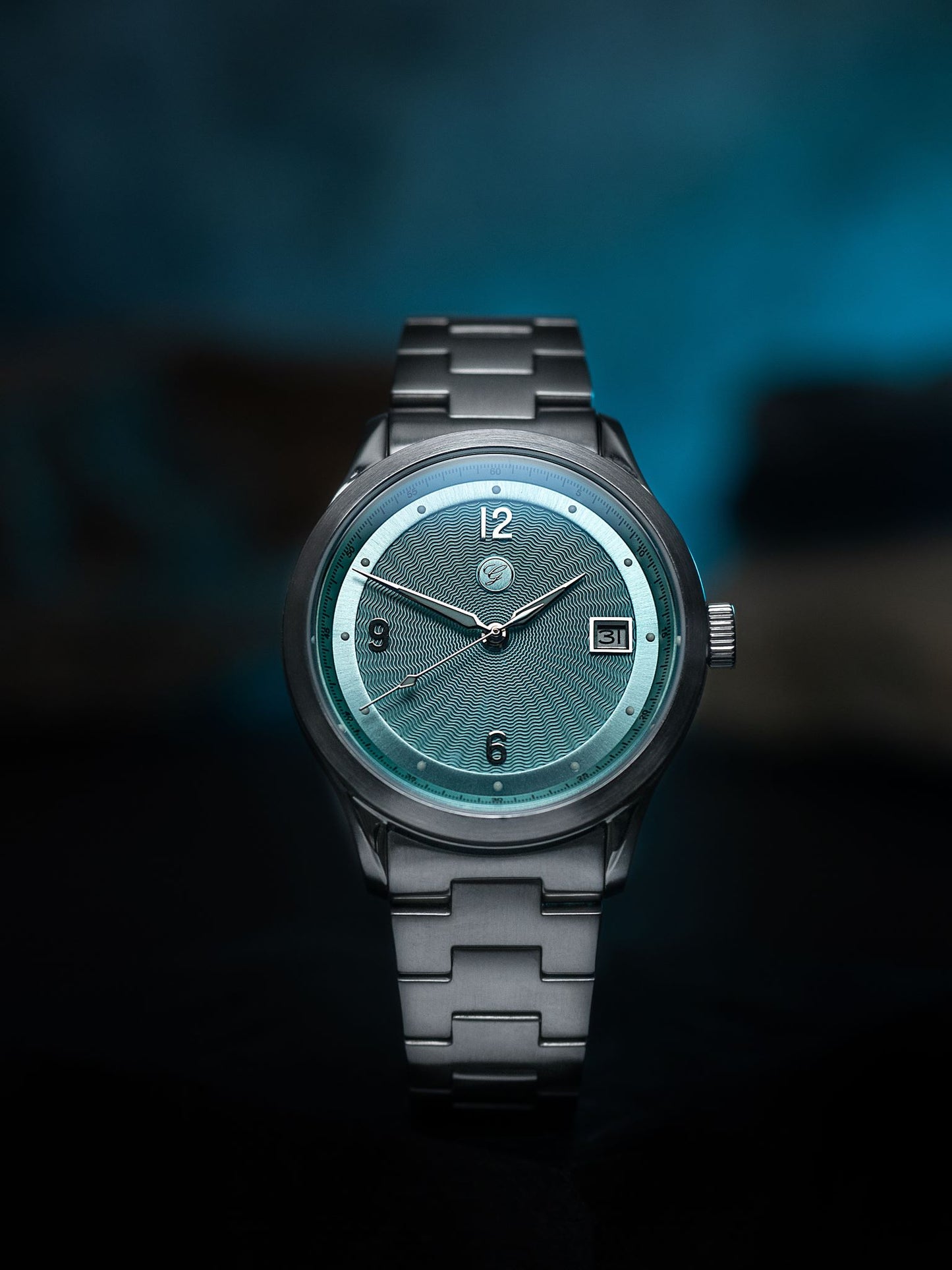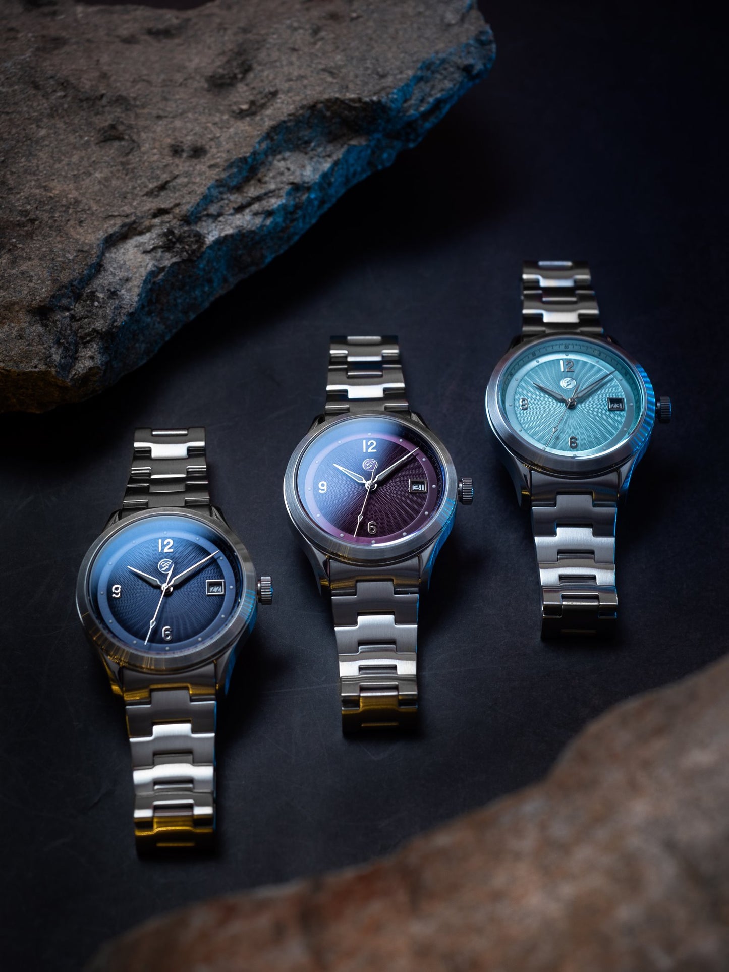 Loimu*, the second collection from Galvin Watch Company, showcases an automatic movement with a date window. Crafted by industry accredited watchmaker Susan Galvin, this collection celebrates her northern Finnish roots. The guilloché-style dials beautifully reflect the radiant aurora borealis of the northern night sky.