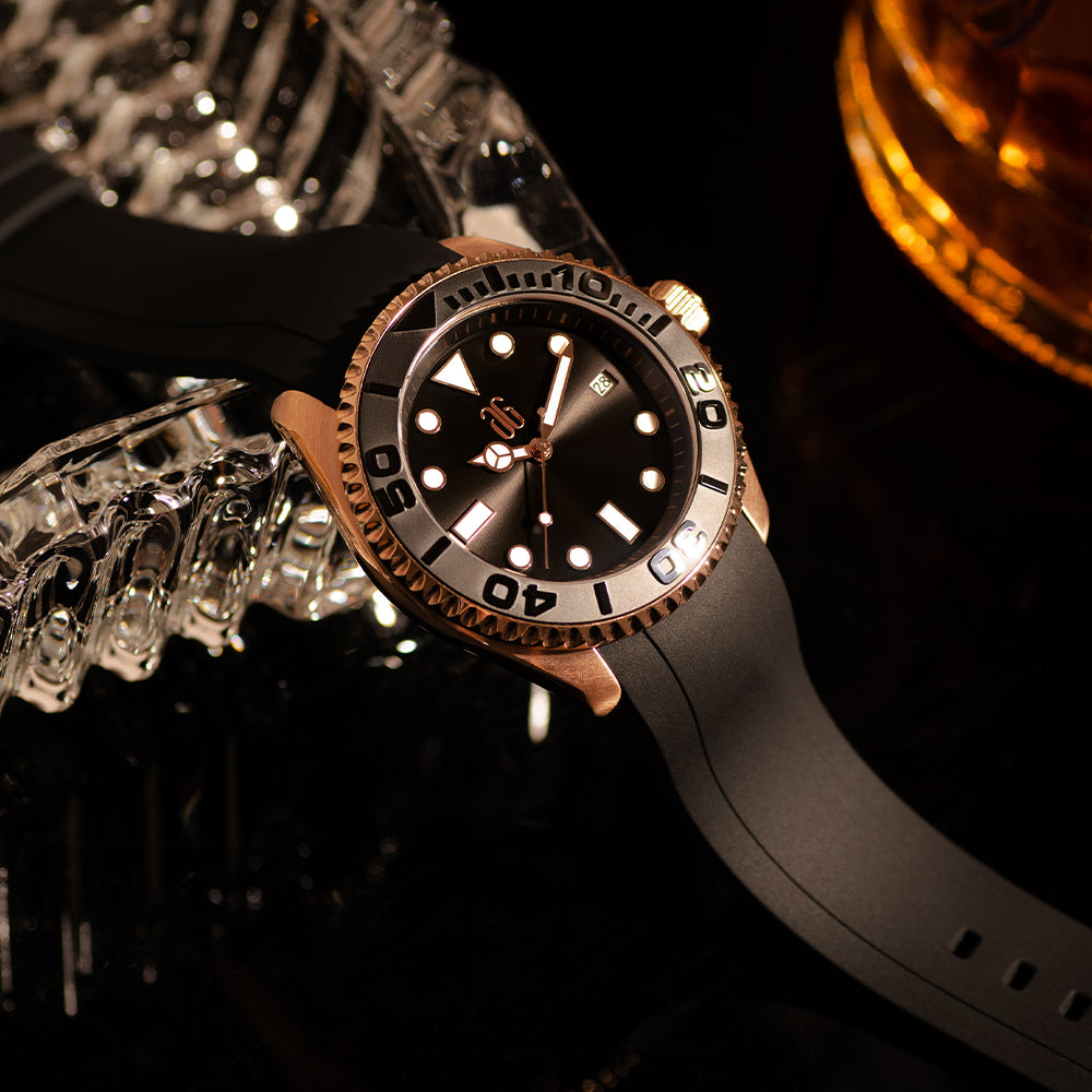 A masterpiece of modern design, seamlessly combining performance with a nod to tradition. The Great White, like its namesake predator, stands out as a true icon of style and functionality. It merges contemporary elements with exceptional attention to detail, featuring bold applied indexes and a versatile selection of bezels. Options include Ceramic GMTs, dive timers, and brushed stainless-steel 60-minute timers with recessed indexes, offering something for every preference.