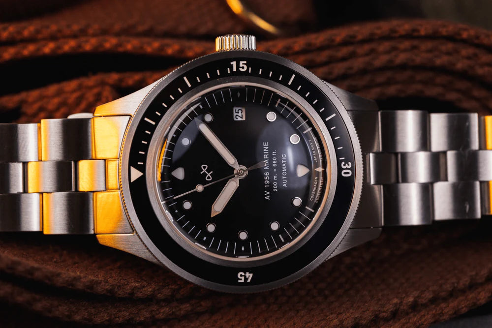 The 1956 Marine Automatic pays homage to this pivotal era, embodying the spirit of innovation and adventure that shaped the golden age of dive watches.