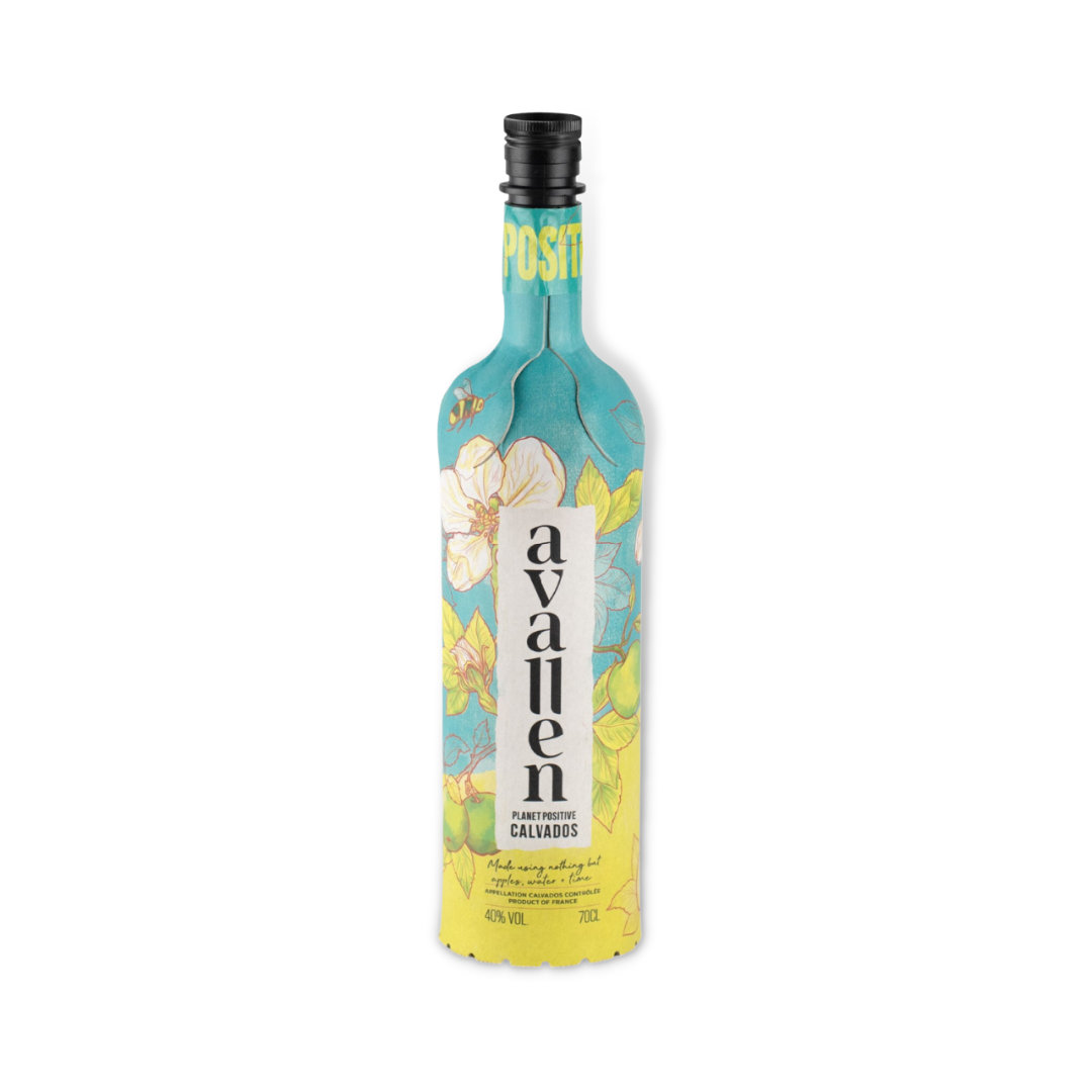 Avallen calvados is made from apple and water. Distilled in column still with copper plates, then rest in French oak vats for up to 6 months. The spirit then spends another 2 to 3 years in casks. Avallen Brandy also comes in paper bottle made from 94% recycled paperboard.