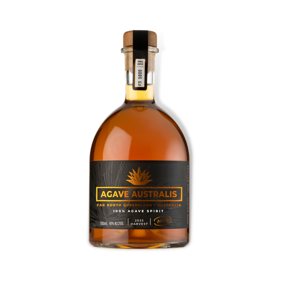 Agave Australis Aged. Made using 100% locally-grown blue Weber agave of the Atherton Tablelands region in tropical North Queensland, Australia. Aged in ex-red wine reconditioned American Oak barrels for 2 years. The result is a spirit of silky texture, bolder and more complex flavour profile.