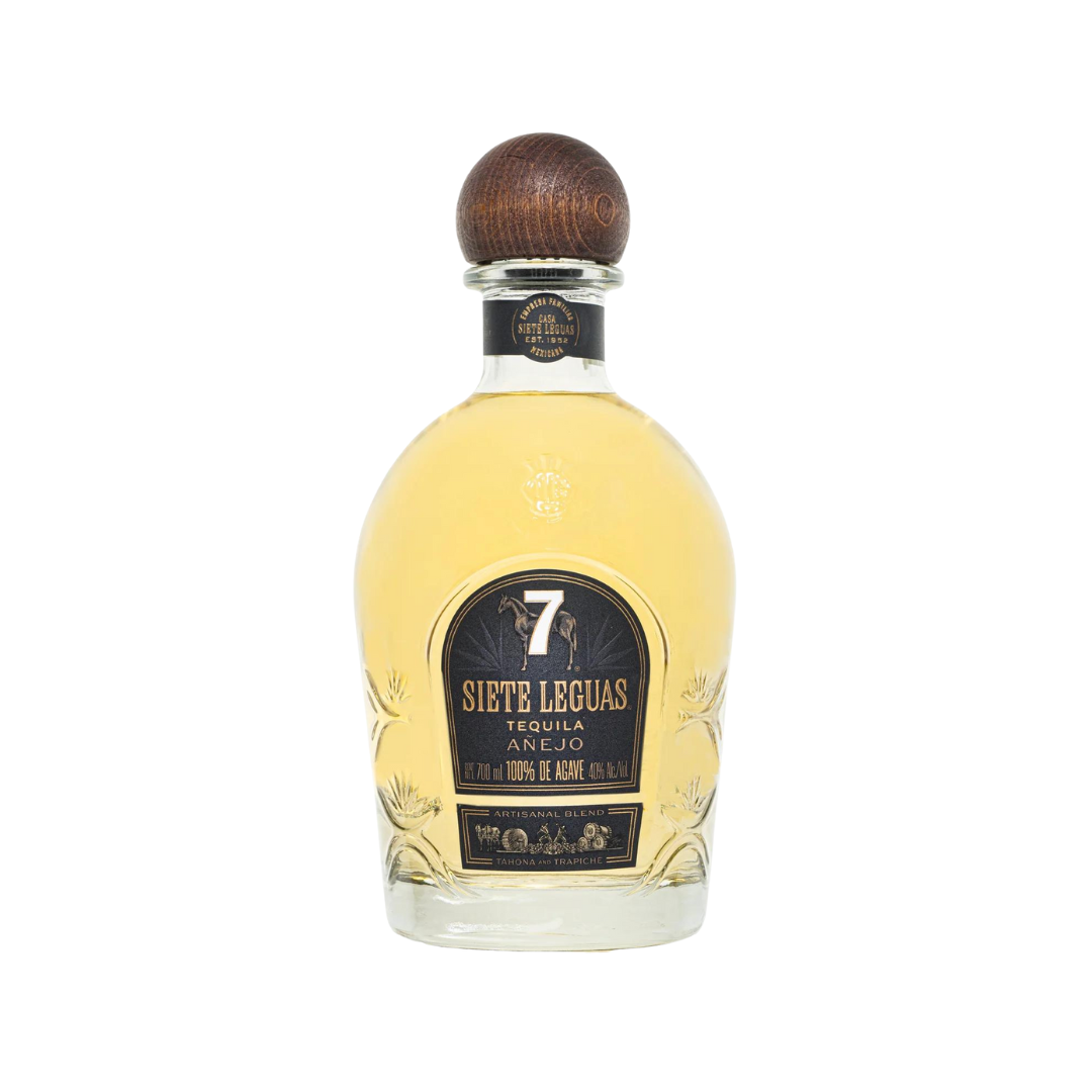 Siete Leguas Anejo, made with 100% blue agave from the Jalisco region. Two-steps distillation in small copper stills. Aged 24 months in American white oak barrels.