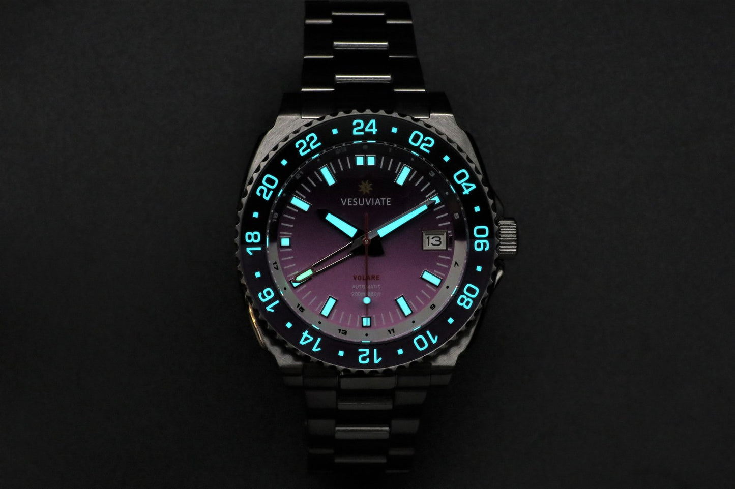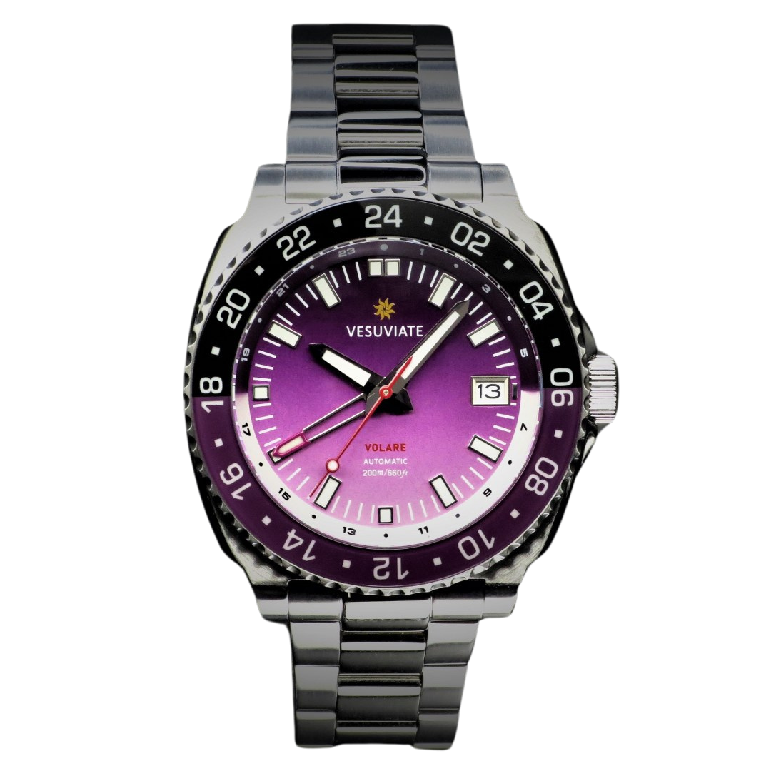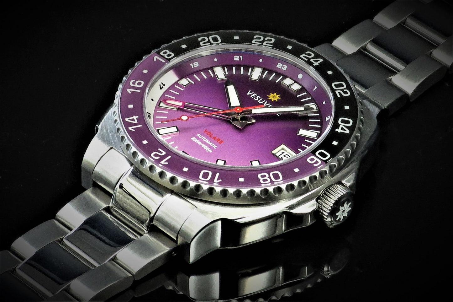 VESUVIATE VOLARE, 200m/660ft – Equipped with the Seiko NH34A (also known as 4R34) movement, this tool-watch features a 316L stainless steel case and bracelet with a super-hard, case-hardened thermochemical treatment. A robust and durable timepiece with a Japanese automatic movement, offering affordability, longevity, and timeless style.